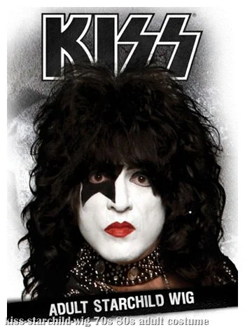Officially Licensed KISS Starchild Costume WigAn officially licensed KISS Starchild Wig is the perfect accent to a Starchild outfit. This wig has long, black, glossy, synthetic hair with a choppy cut and multiple layers for lots of volume. The base of the wig is made of a flexible mesh with an elastic band around the edge for a comfortable fit. This lightweight, breathable wig is perfect after you put on your Starchild face or add an officially licensed costume or mask to pull it all together.