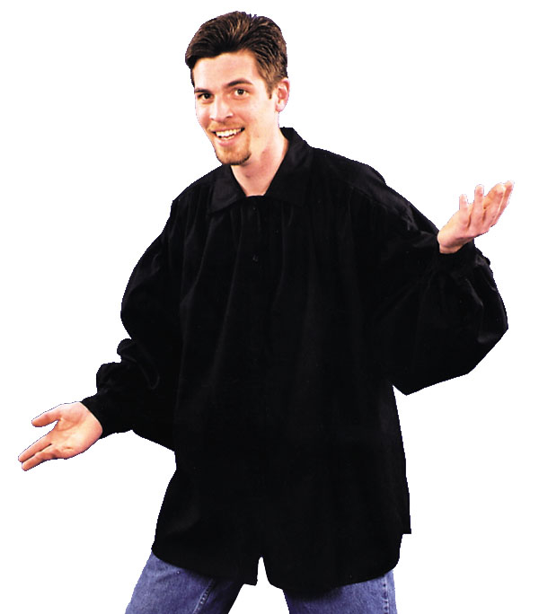Black button-down, cotton blend shirt with puffy sleeves. One size fits all.